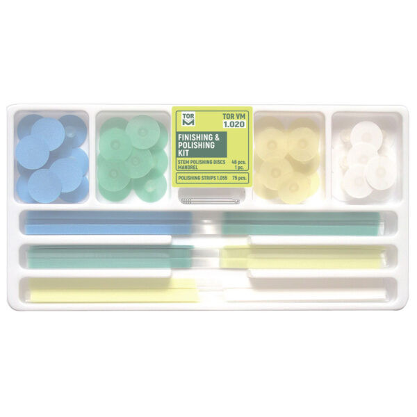 کیت 48 عددی دیسک بدون مرکز تور ویام (Tor VM) یک مجموعهی تخصصی برای دندانپزشکان است که شامل ۴۸ عدد دیسک پرداخت بدون مرکز برای صافکاری، پرداخت و براقکردن مواد ترمیمی مانند کامپوزیتها و همچنین نوارهای پرداخت و یک عدد ماندرل است [1، 4، 5]. هدف اصلی این کیت، ایجاد سطحی صاف و براق با کنترل دقیقتر در عملیات پرداخت است.